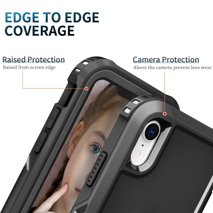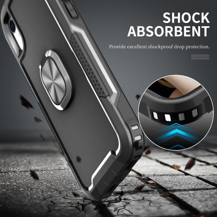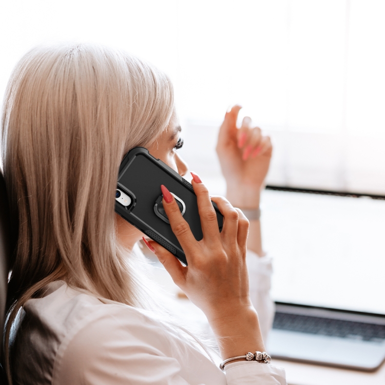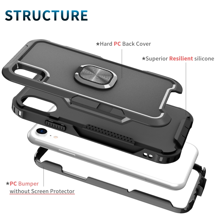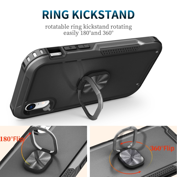 Funda 3 en 1 PC TPU con Soporte de Anillo para iPhone Xr (Negro)