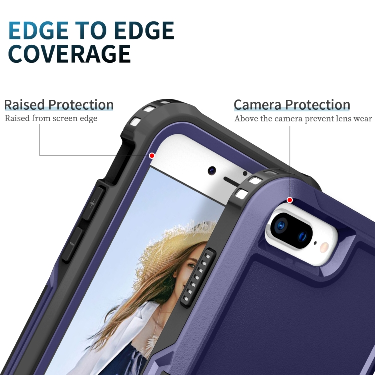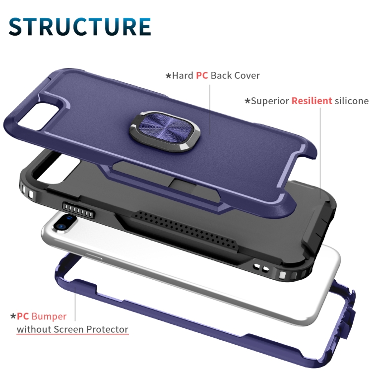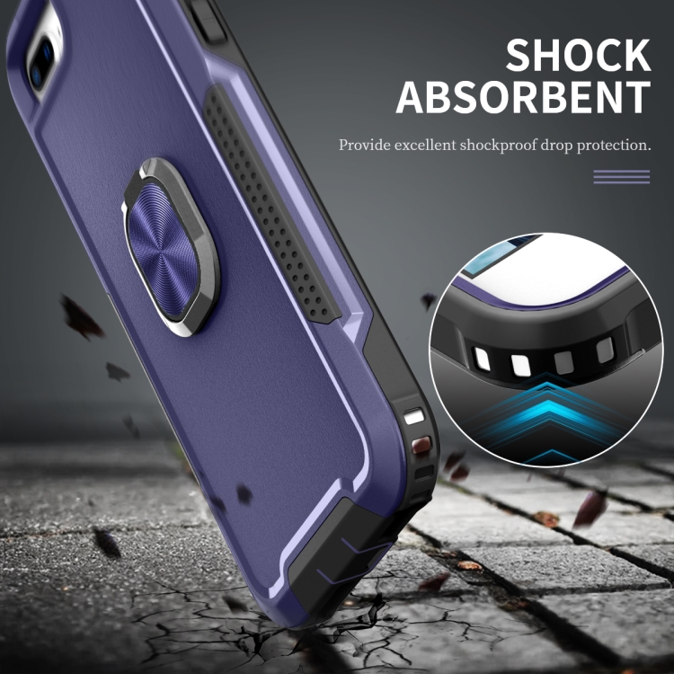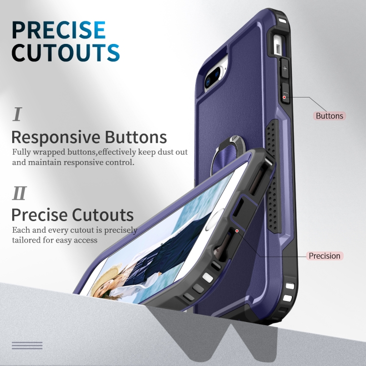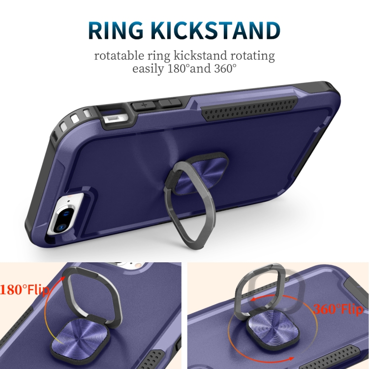Funda Telefónica TPU 3 En 1 con Soporte de Anillo para iPhone 8 Plus y 7 Plus (Azul Marino)