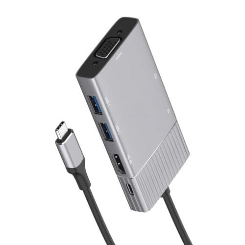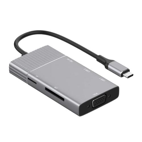 Adaptador Hub 8 en 1 Tipo C a HDMI, Tipo-C, USB x2, VGA, SD, TF y Audio 3.5mm