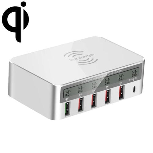 Cargador Multifuncional 818F 50W 5 Puertos USB + Cargador Inalámbrico Magnético Tipo C (Blanco)