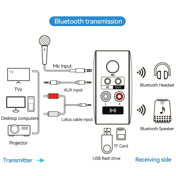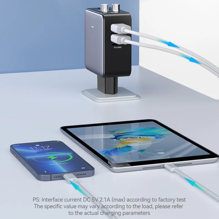 2. Admite recepción bluetooth (RX), transmisor bluetooth (TX), carga de teléfono celular, micrófono para cantar cuatro en uno