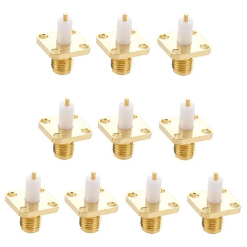 Adaptador de Conector de Soldadura Dieléctrica Extendido SMA Hembra 4 Agujeros Chapado en Oro 10 Piezas para Chasis Panel
