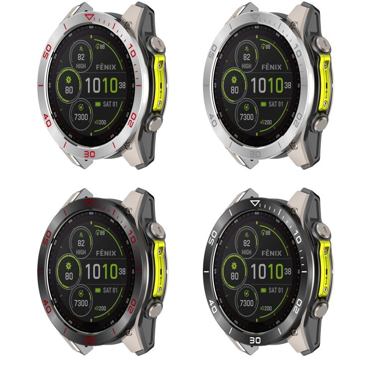 Anillo protector de acero inoxidable para reloj Garmin Tactix 8 AMOLED de 47 mm con zona horaria (negro y rojo)