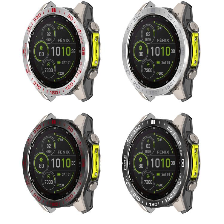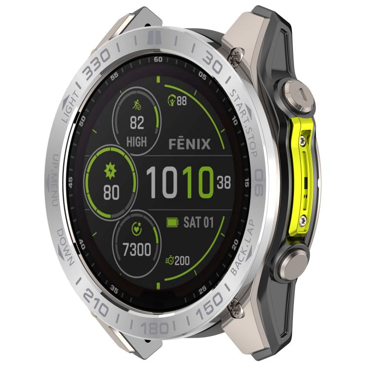 Anillo protector de acero inoxidable para reloj Garmin Tactix 8 AMOLED de 47 mm, estilo Compete Speed, color gris plateado.