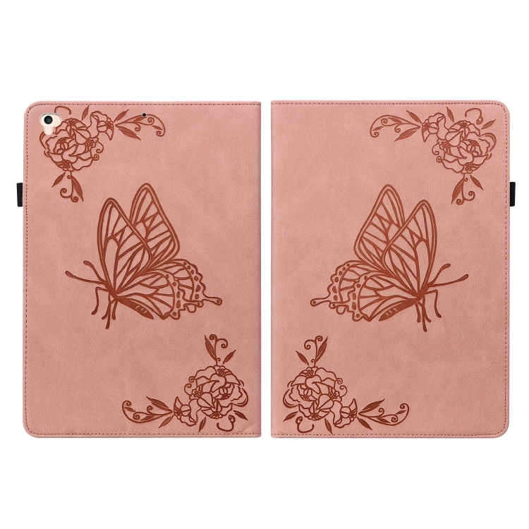 Case de Tableta Cuero En Relieve Mariposa para iPad 9.7 Pulgadas (2017/2018) (Oro Rosa)