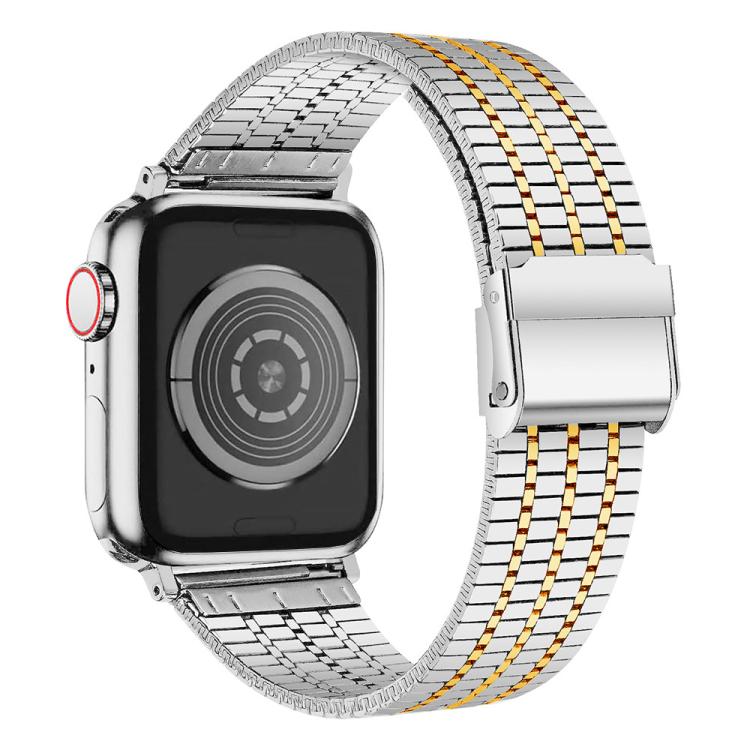Correa de acero inoxidable con hebilla de siete cuentas para Apple Watch 38/40/41/S10 de 42 mm (plata y dorada)
