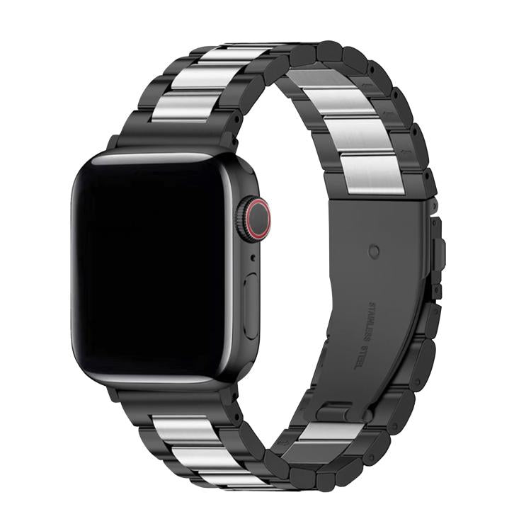Correa de acero inoxidable con tres cuentas y película curva 3D para Apple Watch Series 44 mm (negro y plateado)