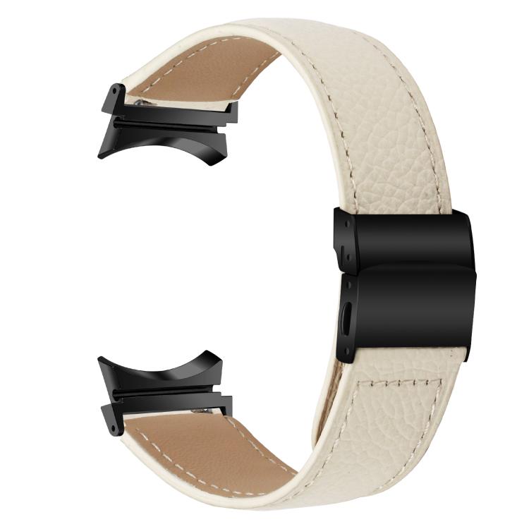 Correa de cuero con hebilla trasera de tortuga negra y textura de lichi para Samsung Galaxy Watch 7 (40/44 mm) (blanco cremoso)