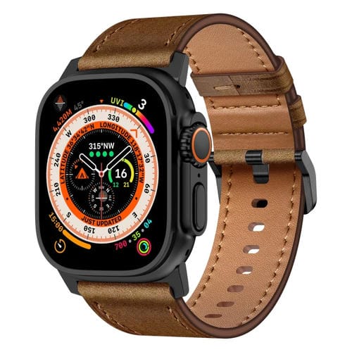 Correa de Cuero Grano Superior Wilderness para Apple Watch Ultra 2 49mm (Negro Marrón Oscuro)