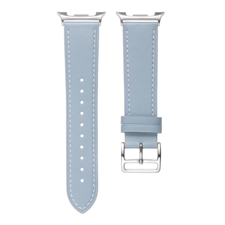 Correa de cuero genuino con hebilla plateada de acero inoxidable para Samsung Galaxy Watch8/Watch8 Classic (azul cielo)
