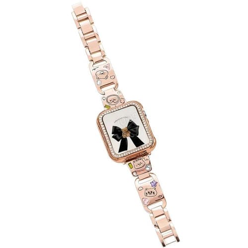 Correa de metal con diamantes Happy Zoo para Apple Watch de 38, 40, 41 y S11 de 42 mm (oro rosa)