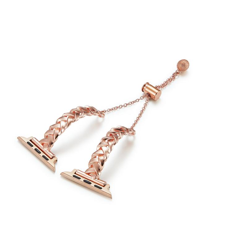 Correa de reloj de aleación de zinc brillante y metal trenzado para Apple Watch de 46 mm, 49 mm, 45 mm y 44 mm (oro rosa)
