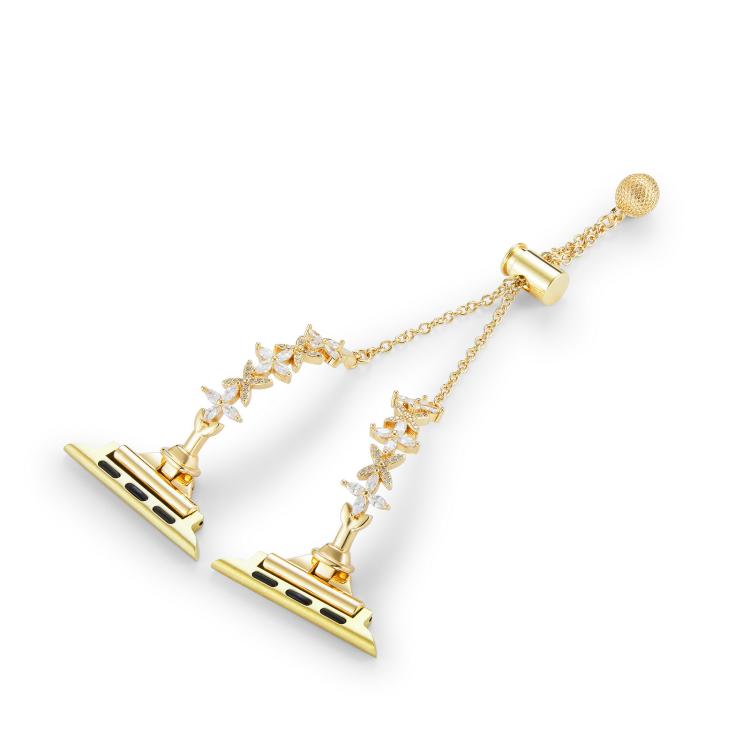 Correa de reloj de aleación de zinc con diamantes y trébol de cuatro hojas para Apple Watch de 42 mm, 41 mm, 40 mm y 38 mm (dorada)