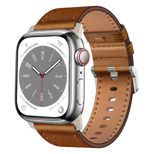 Correa de Reloj Cuero Grano Superior Wilderness para Apple Watch Se 44mm (Titanio Rojo y Marrón)