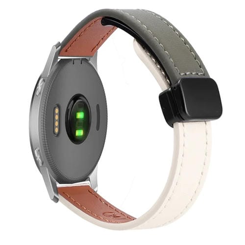 Correa de Reloj Cuero Microfibra con Hebilla Magnética Fina 22mm para Garmin Forerunner 255 Music (Verde Albaricoque y Aguacate)