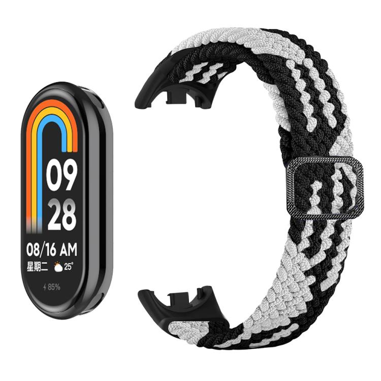 Correa de reloj trenzada de nailon elástica ajustable xDfind para Xiaomi Smart Band 10/9/8 (negro y blanco)