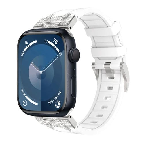 Correa de Silicona para Apple Watch Series 9 45mm con Diseño de Cielo Estrellado y Diamantes (Blanca)