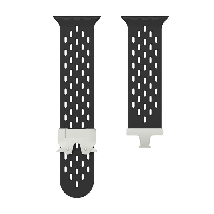 Correa de silicona con hebilla de paraguas plateada Kalebol Mesh para Apple Watch de 42 mm, 41 mm, 40 mm y 38 mm (negra)