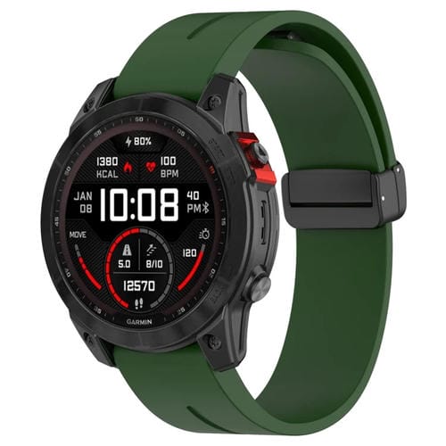 Correa de Silicona con Hebilla Negra Plegable Magnética para Reloj Garmin Fenix 7 (Verde Militar)