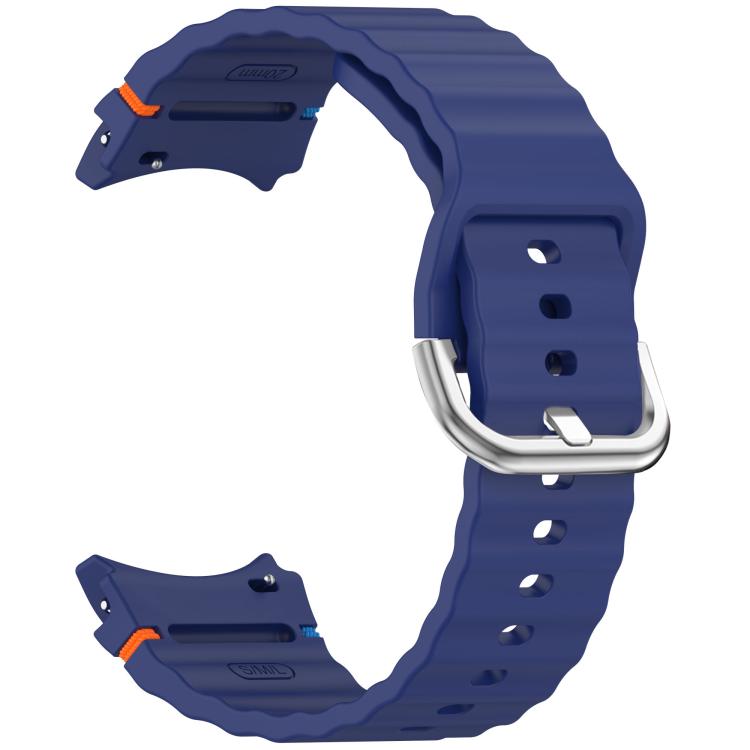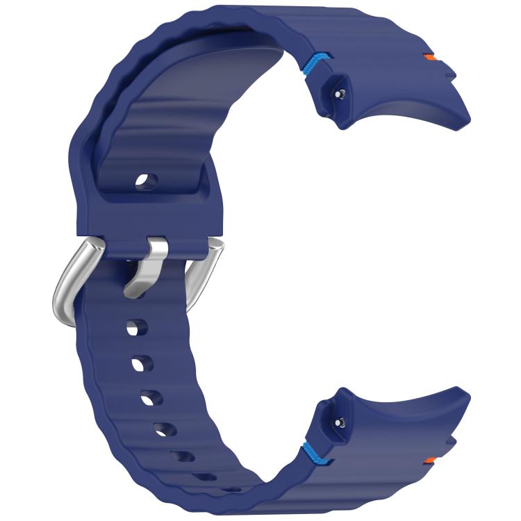 Correa de silicona con hebilla plateada y costuras onduladas para Samsung Galaxy Watch 7 de 40/44 mm (azul medianoche)