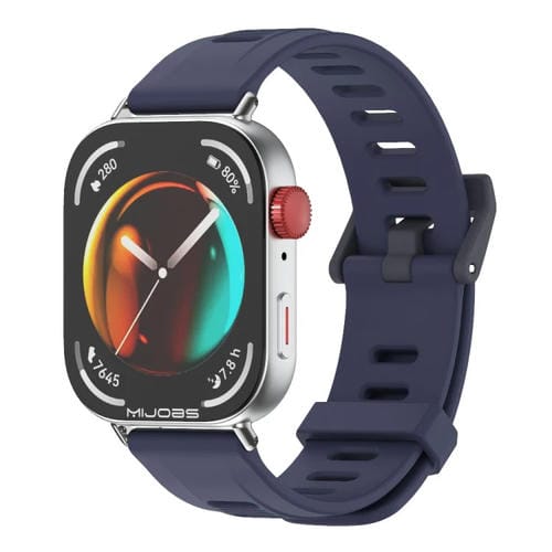Correa de Silicona con Orificios Planos Mijobs para Huawei Watch Fit3 (Azul Medianoche y Plata)