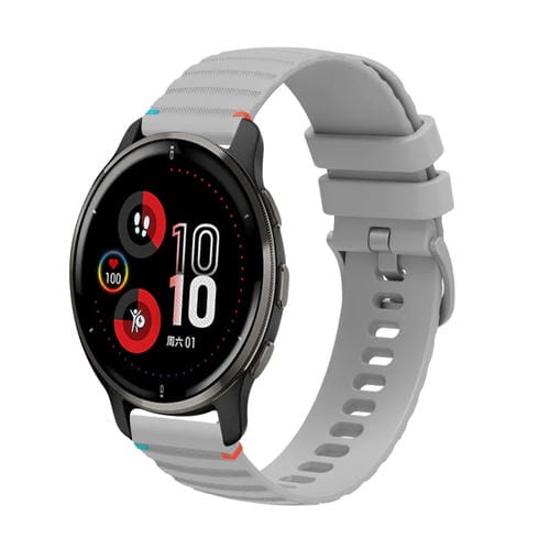 Correa de Silicona para Reloj Garmin Venu 2 Plus 20mm con Puntadas Onduladas y Puntos (Gris)