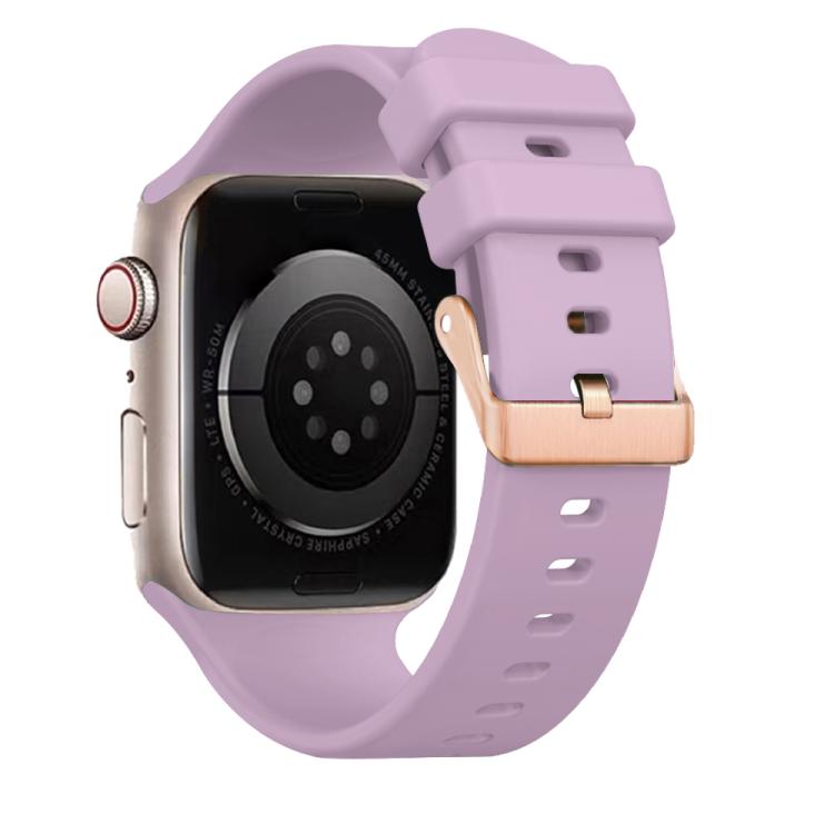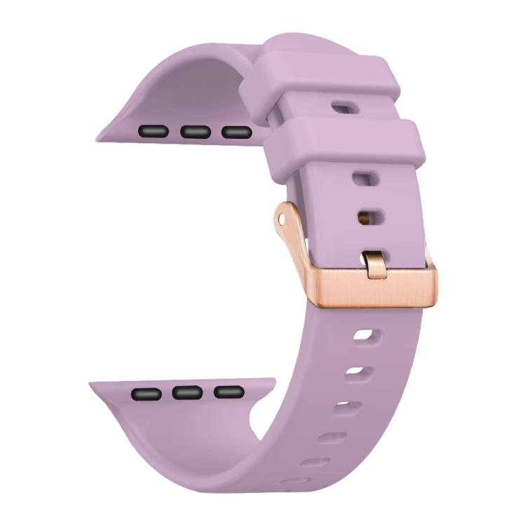 Correa de silicona lisa con hebilla de oro rosa para Apple Watch de 42 mm, 41 mm, 40 mm y 38 mm (morado)