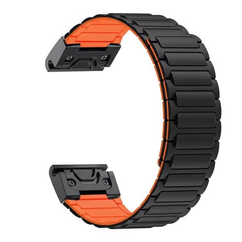 Correa de silicona magnética de liberación rápida para reloj Garmin de 22 mm con tres cuentas (negro y naranja)