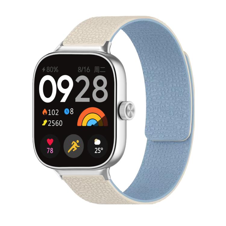 Correa de silicona magnética suave con textura de lichi para Xiaomi Smart Band 9 Pro y Redmi Watch 5 (blanco y azul)