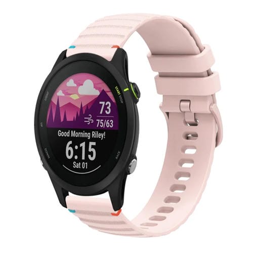 Correa de Silicona Garmin Forerunner 255 Music 22mm con Puntadas Onduladas y Puntos (Rosa)