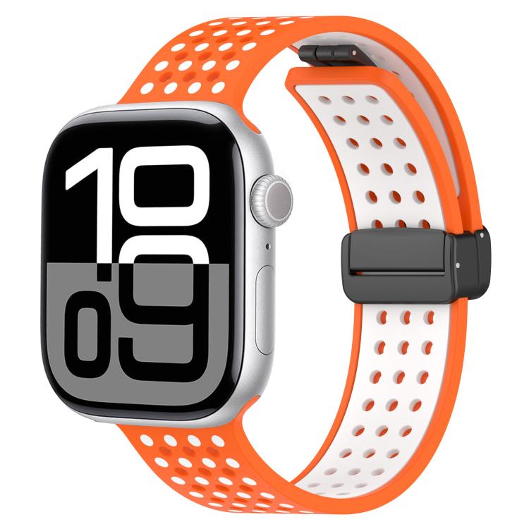 Correa de silicona transpirable con hebilla magnética para Apple Watch de 42 mm, 41 mm, 40 mm y 38 mm (naranja y blanco)