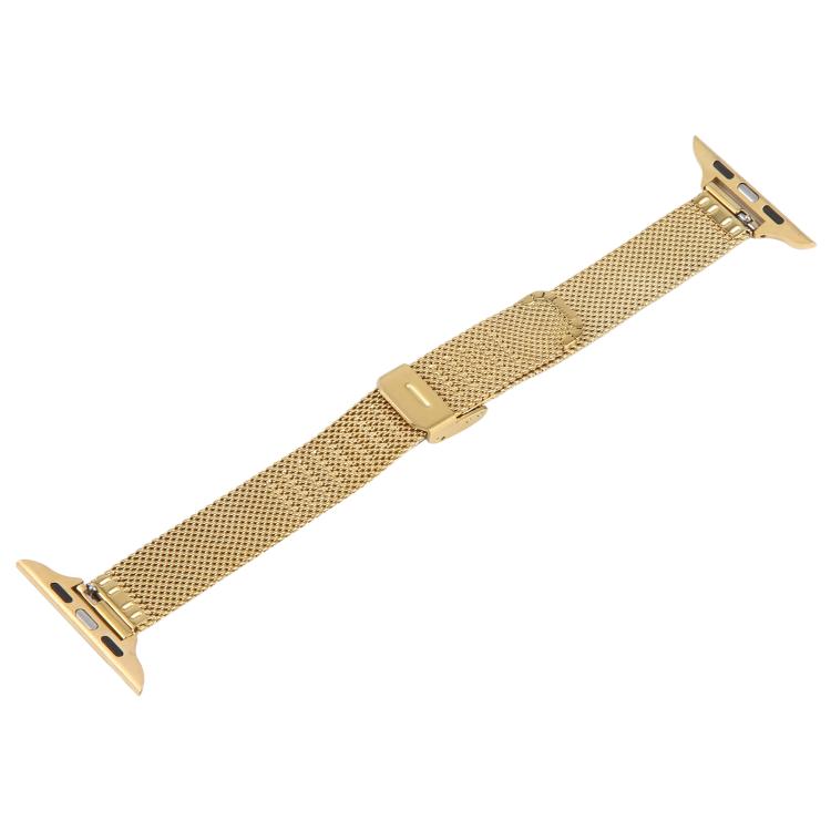 Correa fina de metal milanés con hebilla integrada en relieve para Apple Watch de 42 mm, 41 mm, 40 mm y 38 mm (dorada)