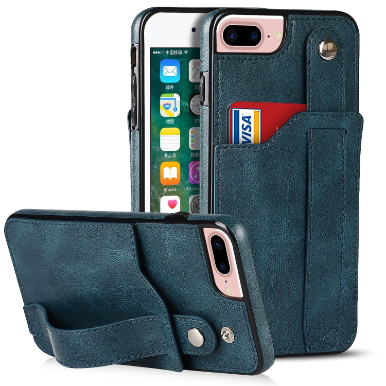 Funda para iPhone 7 Plus 8 Plus Crazy Horse Texture TPU y PU con Ranura para Tarjeta y Soporte (Azul Zafiro)