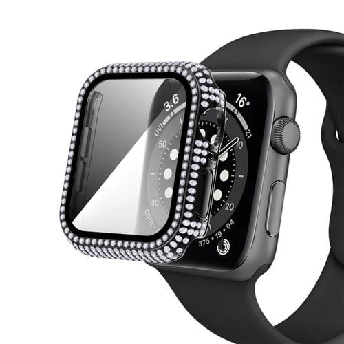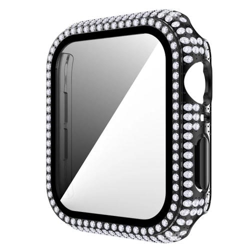Funda Diamond PC + Vidrio Templado para Apple Watch Serie 6 SE 5 4 44mm (Negro)