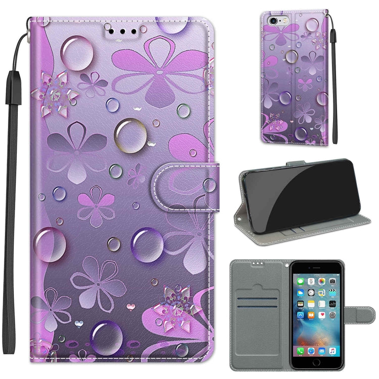 Funda de Cuero PU Voltaje Cierre Magnético Horizontal con Soporte y Ranuras para Tarjeta para iPhone 6S / 6 (C16 Gota de Agua Seis Petal Flower)