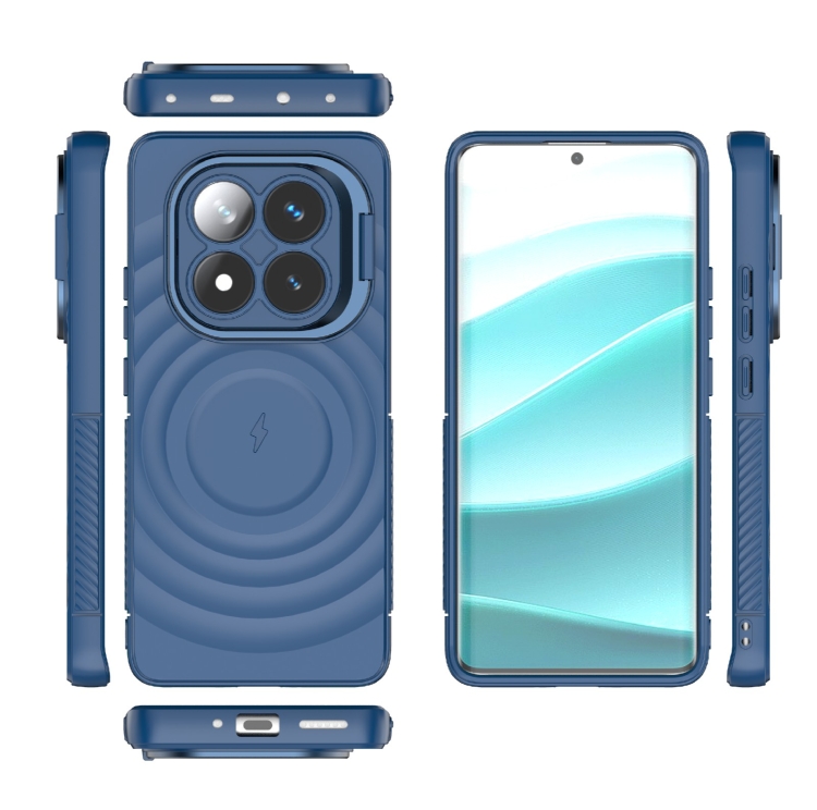 Estuche para Teléfono con Marco de Lente Corrugado Magsafe para Redmi Note 14 Pro 5G (Azul Oscuro)