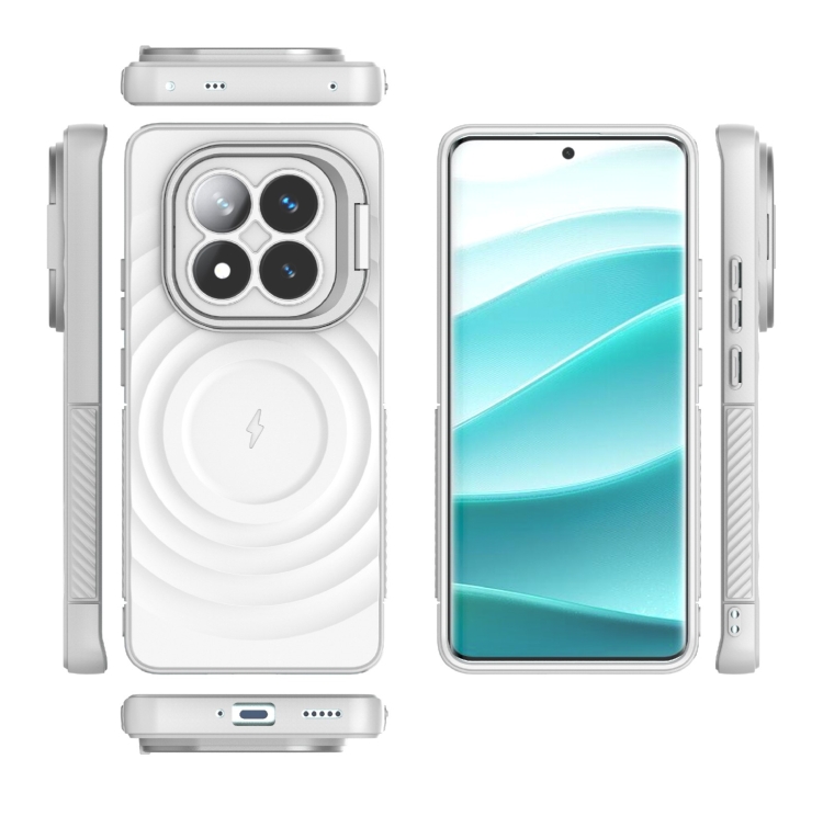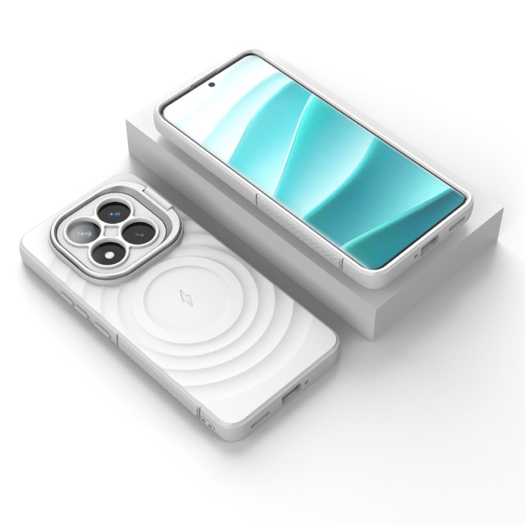 Estuche para Teléfono con Soporte de Marco de Lente Corrugado Magsafe para Redmi Note 14 Pro+ 5G (Blanco)