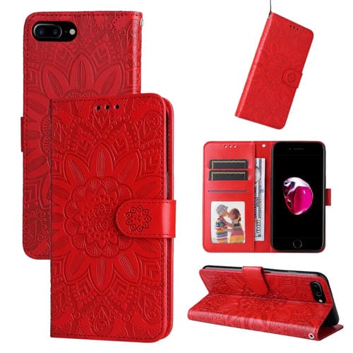 Estuche para Teléfono Cuero iPhone 7 Plus / 8 Plus Estampado Girasol En Relieve (Rojo)