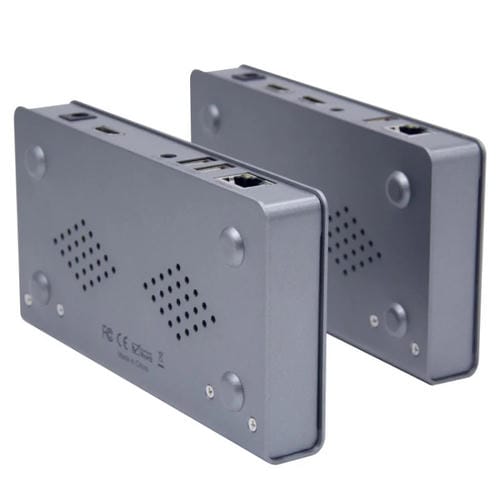 • 1x Extensor KVM 4K HD 120 m para ordenador con Ratón, Teclado, Cable Ethernet, HDMI, transmisor y receptor (Gris)