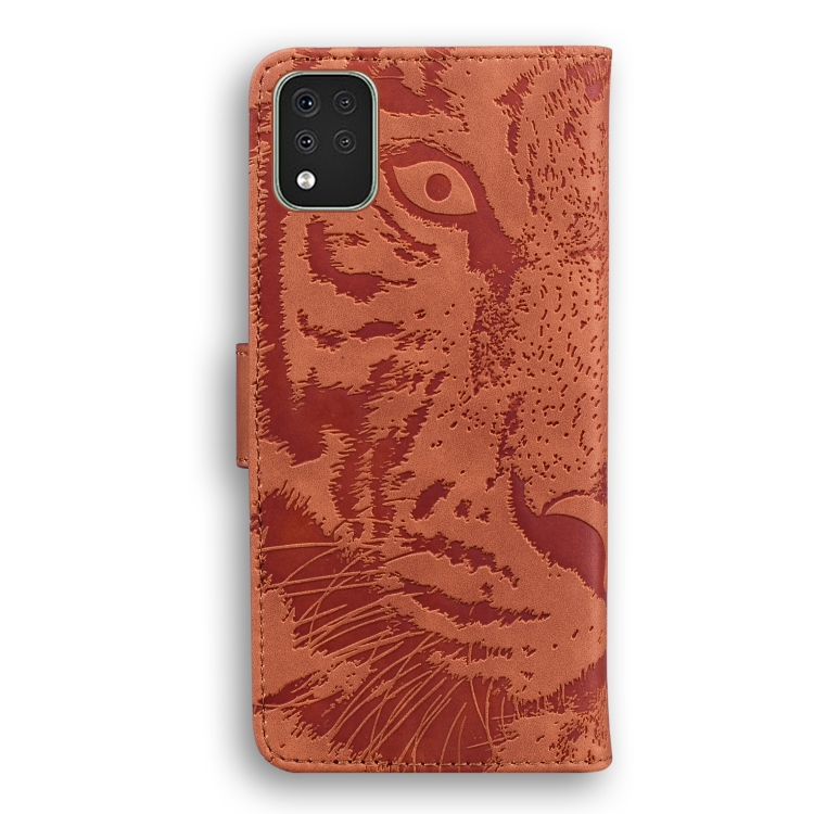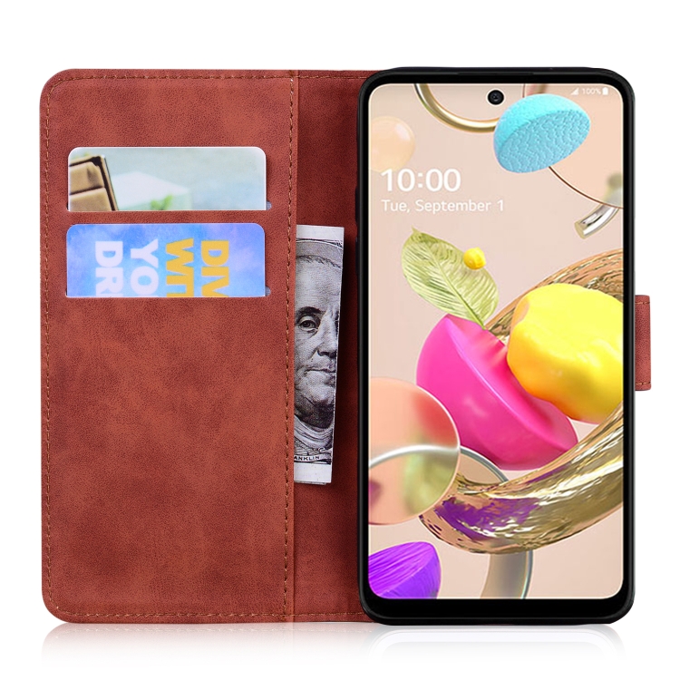 Funda de cuero horizontal para LG K42 con estampado Tiger, tarjetero y billetera (Marrón)