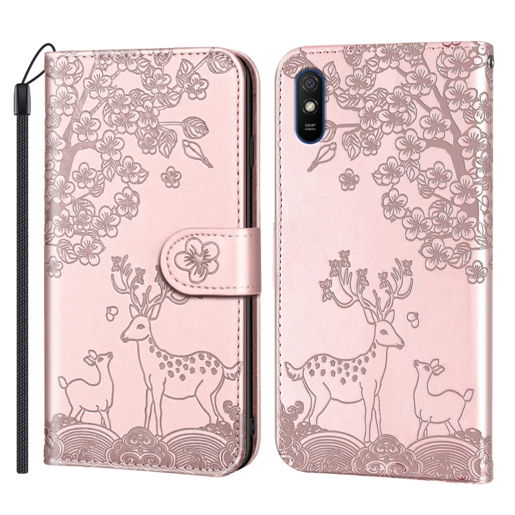 For Xiaomi Redmi 9A Sika Deer Embossing Pattern Horizontal Flip Pu Leather Case With Holder & Card Slot & Wallet & Photo Frame(Rose Gold)