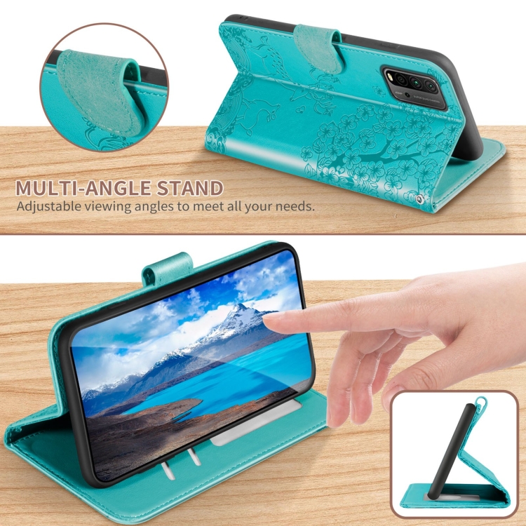 For Xiaomi Redmi 9T Sika Deer Embossing Pattern Horizontal Flip Pu Leather Case With Holder & Card Slot & Wallet & Photo Frame(Green)