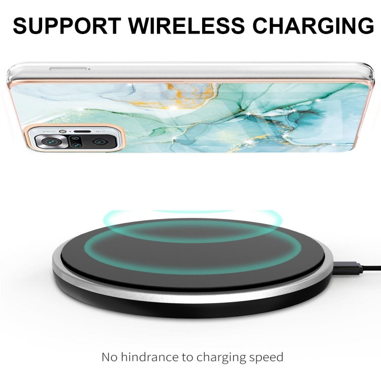 For Xiaomi Redmi Note 10 Pro / 10 Pro Max Electroplating Marble Pattern Dual-Side Imd TPU Shockproof Case(Green 003)