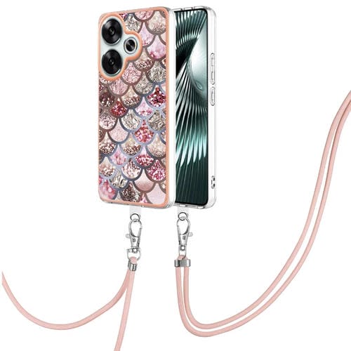 Funda a Prueba de Golpes con Patrón de Galvanoplastia Imd TPU para Xiaomi Poco F6 5G con Cordón para El Cuello (Escamas Rosas)
