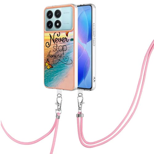 Funda a Prueba de Golpes con Patrón de Galvanoplastia Imd TPU para Xiaomi Poco F6 Pro 5G con Cordón para El Cuello (Mariposa Persiguiendo Sueños)