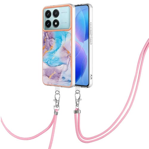 Funda a Prueba de Golpes con Patrón de Galvanoplastia Imd TPU para Xiaomi Poco F6 Pro 5G con Cordón para El Cuello (Mármol Azul Vía Láctea)