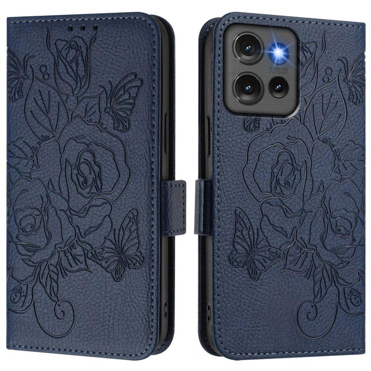 Funda de Cuero Antirrobo con Rfid para Motorola Edge 50 5G con Relieve Global (Azul Oscuro)