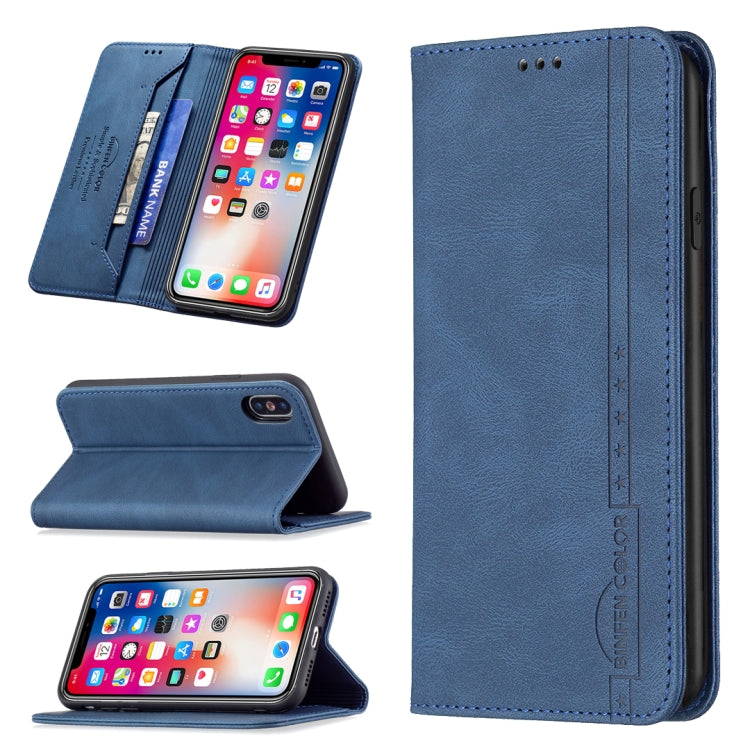 Funda de Cuero Antirrobo Bloqueo Rfid Magnético con Soporte y Ranuras para Tarjetas y Billetera para iPhone X / Xs (Azul)