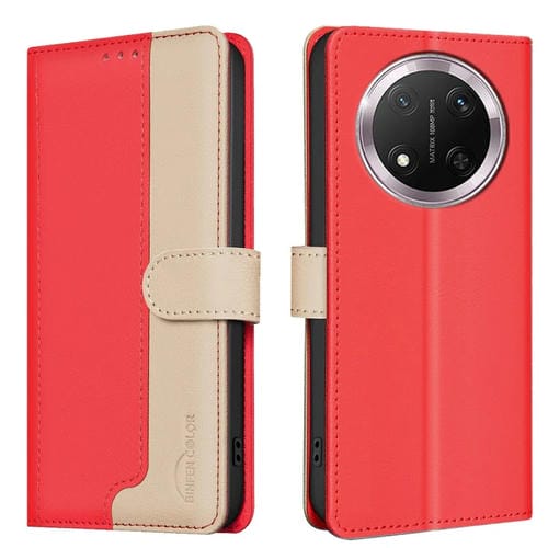 Funda de Cuero Antirrobo RFID para Honor X9C 5G (Rojo) con Colores Globales