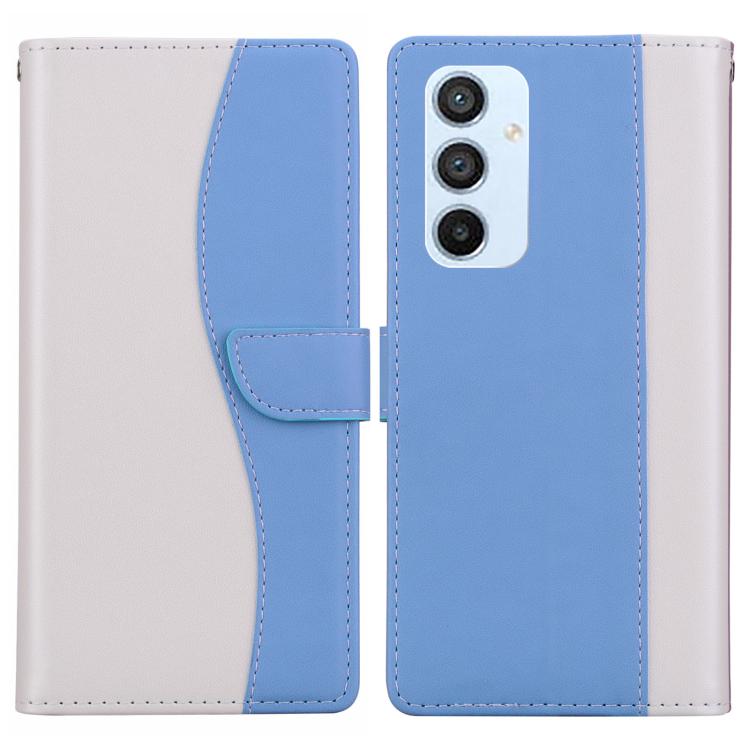 Funda de cuero bicolor con relieve para Samsung Galaxy A54 5G (blanco y azul)